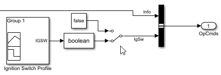 В подсистеме модели продольного привода установите профиль переключателя зажигания IgSw комуon'.