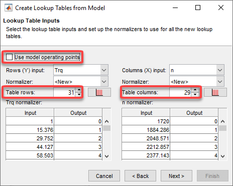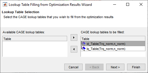 Используйте мастер заполнения таблицы подстановки из результатов оптимизации для заполнения Id_Table и Iq_Table таблицы.