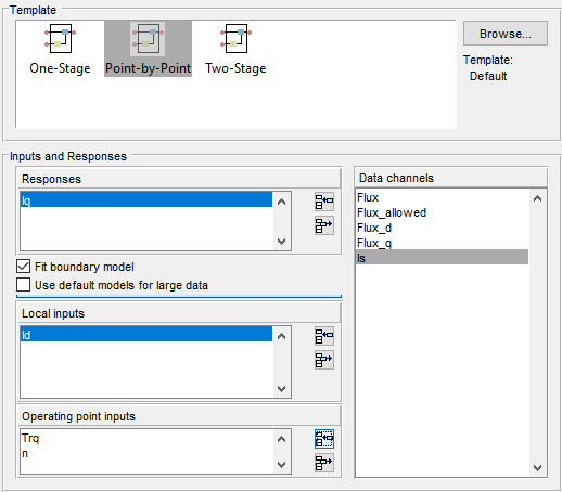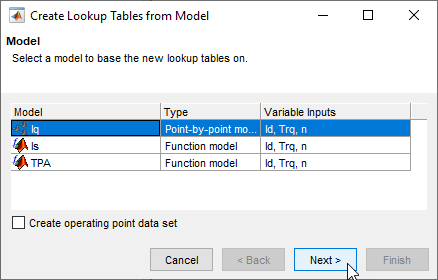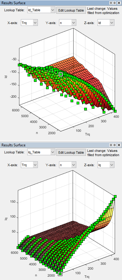 Поскольку существует простая зависимость между токами d- и q-оси для фиксированных рабочих точек крутящего момента и скорости, модель «точка за точкой» обеспечивает точную подгонку.