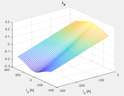 % % Load the data from a |mat| file captured from a dynamometer or % another CAE tool. load FEAdata.mat; % Load the data matrix. lambda_d = FEAdata.flux.d; lambda_q = FEAdata.flux.q; id = FEAdata.current.d; iq = FEAdata.current.q;