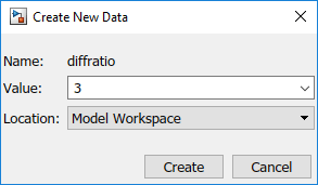Диалоговое окно Создать новые данные (Create New Data) используется для создания параметра «Рабочее пространство модели» (Model Workspace). diffratio равно значению 3.