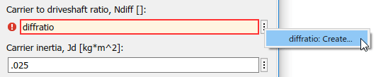 Измените коэффициент несущего вала на карданный вал, параметр Ndiff на переменную diffratio. Отношение водила к карданному валу, параметр Ndiff представляет конечное передаточное число привода.