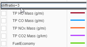Выполнить обычное моделирование транспортного средства с окончательным передаточным числом привода 2.5. Импортируйте результаты в инспектор данных моделирования.