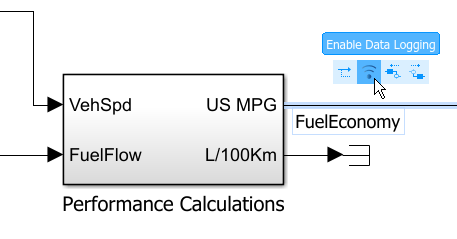 В Visualization выберите подсистему, FuelEconomy сигнальная линия и Enable Data Logging.