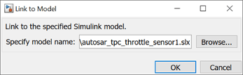 В диалоговом окне «Связь с моделью» перейдите к модели реализации. autosar_tpc_throttle_sensor1.slx.