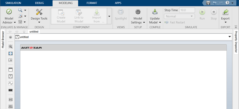 После создания модели архитектуры AUTOSAR начинается разработка верхнего уровня конструкции программного обеспечения AUTOSAR. Используйте редактор композиций и вкладку Simulink ® Toolstrip Modeling для добавления и подключения композиций и компонентов AUTOSAR.