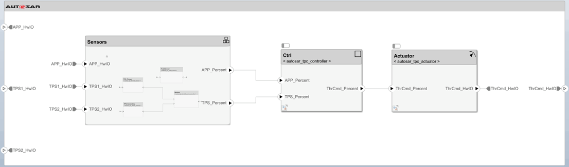 При создании приложения управления положением дросселя можно обратиться к примеру модели autosar_tpc_composition, который показывает конечный результат.