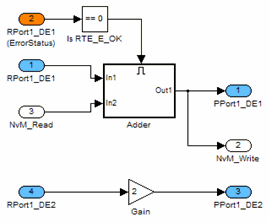 Порты AUTOSAR NV моделируются с помощью входов и выходов Simulink таким же образом, как описано в разделе Интерфейс отправителя и получателя.
