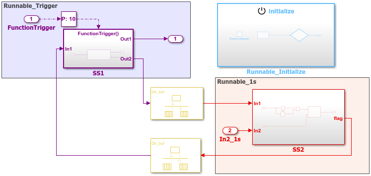 Создайте программный компонент с несколькими исполняемыми модулями, моделируемыми как подсистемы вызова функций или функциональные блоки Simulink в Simulink.