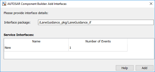 hModel = 'autosar_LaneGuidance'; addpath(fullfile(matlabroot,'/examples/autosarblockset/main')); open_system(hModel); % Add AUTOSAR service interface mySvcInterface with event mySvcEvent arProps = autosar.api.getAUTOSARProperties(hModel); addPackageableElement(arProps,'ServiceInterface',... '/LaneGuidance_pkg/LaneGuidance_if','mySvcInterface'); add(arProps,'mySvcInterface','Events','mySvcEvent'); % Add AUTOSAR required port myRPort, associated with mySvcInterface add(arProps,'LaneGuidance','RequiredPorts','myRPort',... 'Interface','mySvcInterface'); % Map Simulink inport to AUTOSAR port/event pair myRPort and mySvcEvent slMap = autosar.api.getSimulinkMapping(hModel); mapInport(slMap,'rightCarInBlindSpot','myRPort','mySvcEvent');