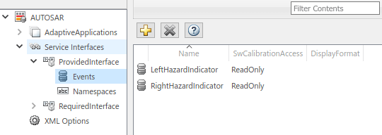 Откройте словарь AUTOSAR и выберите Сервисные интерфейсы. Для создания сервисного интерфейса AUTOSAR нажмите кнопку Add.