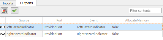 Создайте входные и выходные порты корневого уровня и сопоставьте их с требуемыми и предоставленными портами AUTOSAR и событиями сервисного интерфейса.