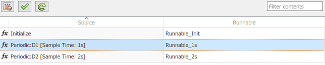 Если модель программного компонента AUTOSAR содержит несколько таблиц выполнения, можно настроить порядок выполнения таблиц выполнения. Дополнительные сведения см. в разделе Настройка выполняемого порядка выполнения AUTOSAR.