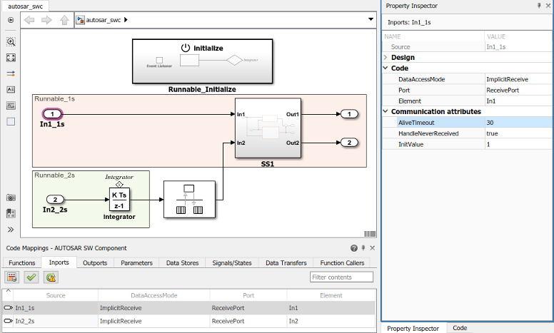 Например, при создании порта приемника AUTOSAR в Simulink используется редактор сопоставления кодов для сопоставления входного порта Simulink с портом приемника AUTOSAR и элементом данных S-R. Затем можно выбрать порт и указать его атрибуты ComSpec.