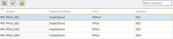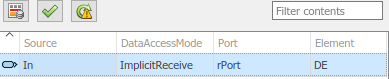 'ASWC/PRPort'slMap = autosar.api.getSimulinkMapping(hModel); mapInport(slMap,'RPort_DE1','PRPort','DE1','ImplicitReceive') mapOutport(slMap,'PPort_DE1','PRPort','DE1','ImplicitSend') [arPortName,arDataElementName,arDataAccessMode] = getOutport(slMap,'PPort_DE1')