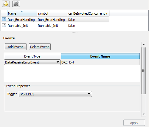 В разделе Свойства события выберите триггер для события. Выбранное значение триггера указывает порт приемника AUTOSAR и элемент данных, для которого выполняется обработка DataReceiveErrorEvents.