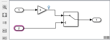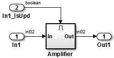 Определите входной порт, соответствующий порту приемника AUTOSAR, для которого IsUpdated требуется обслуживание. Создайте второй входной порт, задайте для него тип данных booleanи подключите его к тому же блоку. Например: