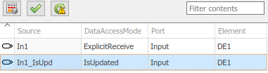 Смоделировать IsUpdated служба в Simulink, вы соединяете входной порт, который настроен для ExplicitReceive доступ к данным с новым портом ввода, сконфигурированным для IsUpdated доступ к данным. Конфигурирование порта приемника AUTOSAR для IsUpdated услуга: