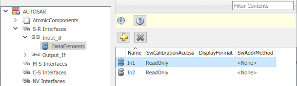 Для второго входного блока, флага управления недействительностью, добавьте корневой входной порт с именем In2 к модели. Установить его тип данных скалярным boolean. Сопоставьте новый порт ввода со вторым портом отправителя AUTOSAR. Если второй порт отправителя AUTOSAR не существует, используйте словарь AUTOSAR для создания порта AUTOSAR, интерфейса S-R и элемента данных.