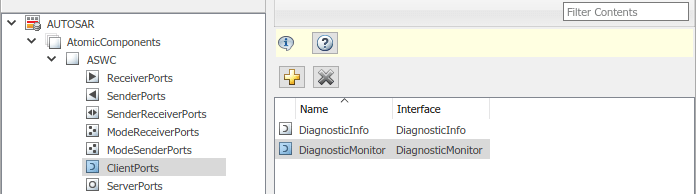 . Программное обеспечение создает интерфейсы, операции и порты клиентской службы AUTOSAR и сопоставляет каждого вызывающего абонента функции Simulink с клиентским портом и операцией AUTOSAR.