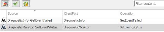 Редактор сопоставлений кодов сопоставляет DiagnosticMonitor функциональный блок вызывающего абонента на клиентский порт AUTOSAR DiagnosticMonitor и работа AUTOSAR SetEventStatus.
