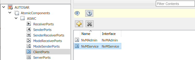 Редактор сопоставлений кодов сопоставляет NvMService функциональный блок вызывающего абонента на клиентский порт AUTOSAR NvMService и работа AUTOSAR ReadBlock.