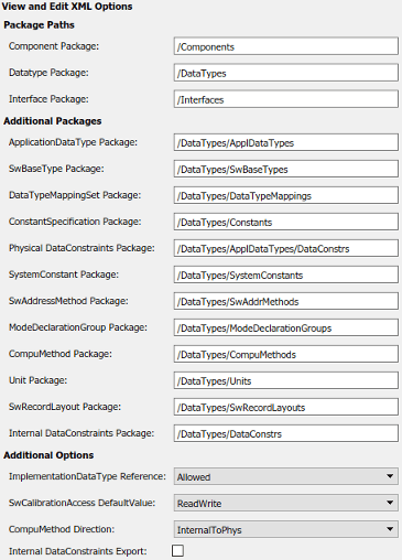 Дополнительные сведения см. в разделе Настройка параметров AUTOSAR XML.