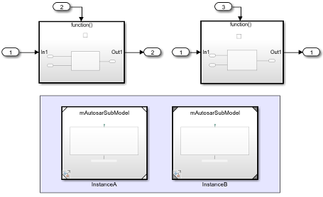 Сконфигурируйте подмодель как модель, на которую ссылается модель компонента программного обеспечения AUTOSAR. Используйте функцию быстрого запуска компонента AUTOSAR или AUTOSAR autosar.api.create.