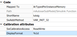 | SwCalibrationAccess | Укажите способ доступа инструментов измерения и калибровки к переменной AUTOSAR. Допустимые значения доступа включают ReadOnly, ReadWrite, и NotAccessible. Дополнительные сведения см. в разделе Настройка SwCalibrationAccess. |