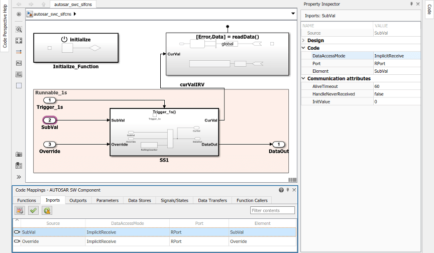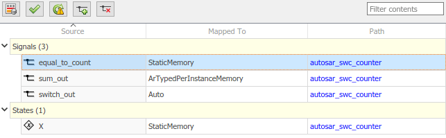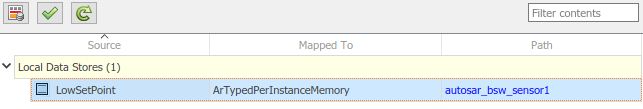 Дополнительные сведения см. в разделах Сопоставление сигналов блоков и состояний с переменными AUTOSAR, Сопоставление хранилищ данных с переменными AUTOSAR и Сопоставление параметров рабочего пространства модели с параметрами компонентов AUTOSAR.
