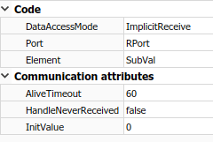 Для портов приемника, не поставленных в очередь AUTOSAR, можно изменить атрибуты ComSpec AliveTimeout, HandleNeverReceived, и InitValue.