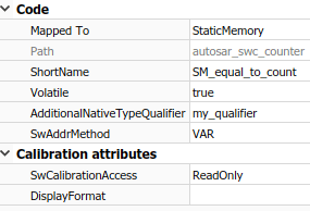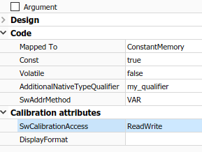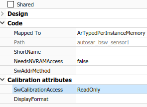| SwCalibrationAccess | Укажите способ доступа инструментов измерения и калибровки к переменной AUTOSAR. Допустимые значения доступа включают ReadOnly, ReadWrite, и NotAccessible. Дополнительные сведения см. в разделе Настройка SwCalibrationAccess. |