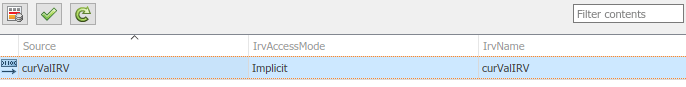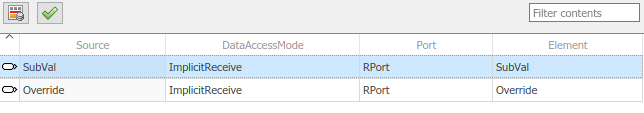 На вкладке «Передачи данных» редактора «Сопоставления кодов» каждая строка передачи данных Simulink сопоставляется с IRV AUTOSAR. Нажмите кнопку Обновить
