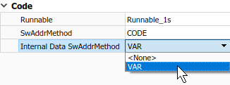 Создание кода для выполняемых внутренних данных SwAddrMethods требует установки опции конфигурации модели Code Generation > Interface > Generate separent internal data per entry-point function (Создание кода > Интерфейс > Генерировать отдельные внутренние данные для каждой функцииGroupInternalDataByFunctionКому on.
