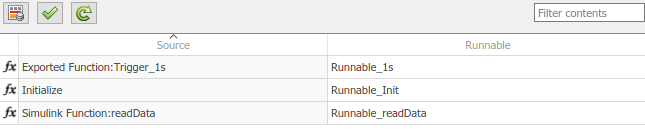 Вкладка Функции (Functions) редактора Сопоставления кода (Code Mappings) сопоставляет каждую функцию точки входа Simulink с возможностью выполнения AUTOSAR. Нажмите кнопку Обновить (Update),