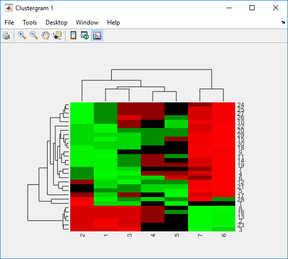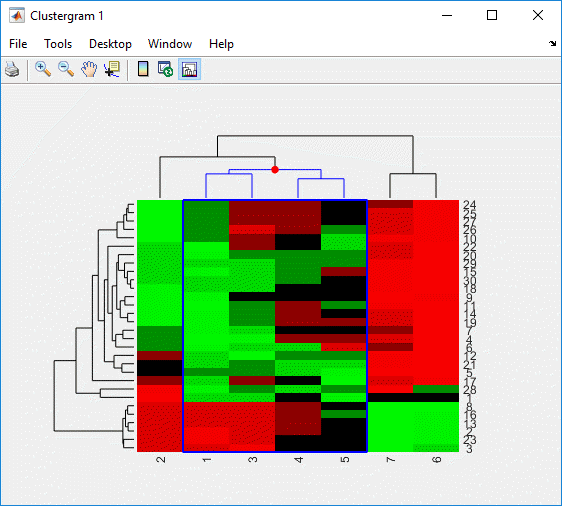 clusterGroup( выбирает и выделяет группу кластера, указанную cgObj1,groupIndex,dim)groupIndex вдоль размера строки или столбца dim в окне Clustergram.