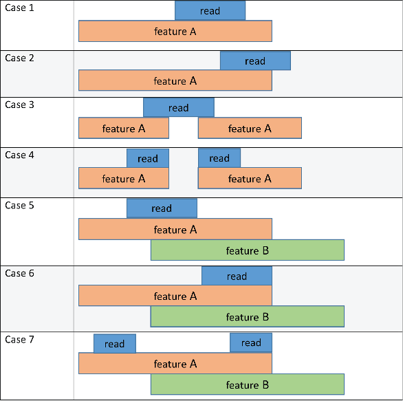Вы можете выбрать, как назначить чтение определенной функции, когда чтение перекрывается с несколькими функциями, установив параметр «Метод чтения». Например, если вы хотите считать только чтение, если он полностью перекрывает функцию, используйте параметр «full».