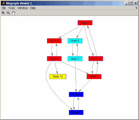 [ находит сильно связанные компоненты графа, представленные матрицей S, C] = graphconncomp(G)G используя алгоритм Тарьяна. Сильно связанный компонент - это максимальная группа узлов, которые взаимно достижимы без нарушения краевых направлений. Вход G - разреженная матрица N-на-N, представляющая граф. Ненулевые записи в матрице G указывают на наличие ребра.