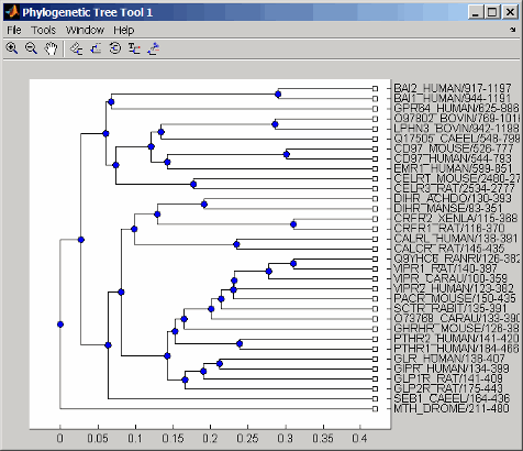 Phylogenetic tree object with 33 leaves (32 branches)Просмотрите объект phytree.