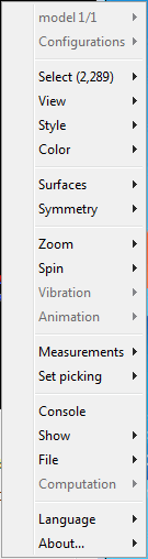 Управляйте структурой 3-D и аннотируйте ее, выбирая опции на панели управления или, для получения полного списка опций, щелкнув правой кнопкой мыши окно «Просмотр молекул», чтобы выбрать команды: