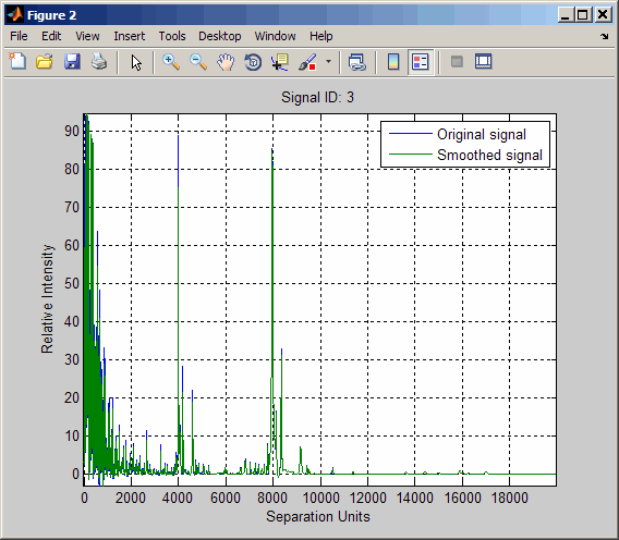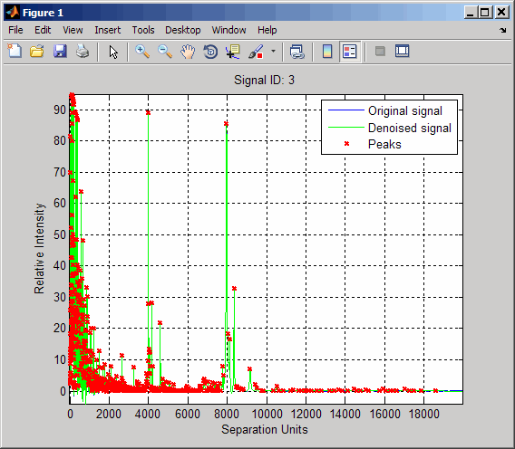 P = mspeaks(MZ_lo_res,YS,'DENOISING',false,'SHOWPLOT',3);