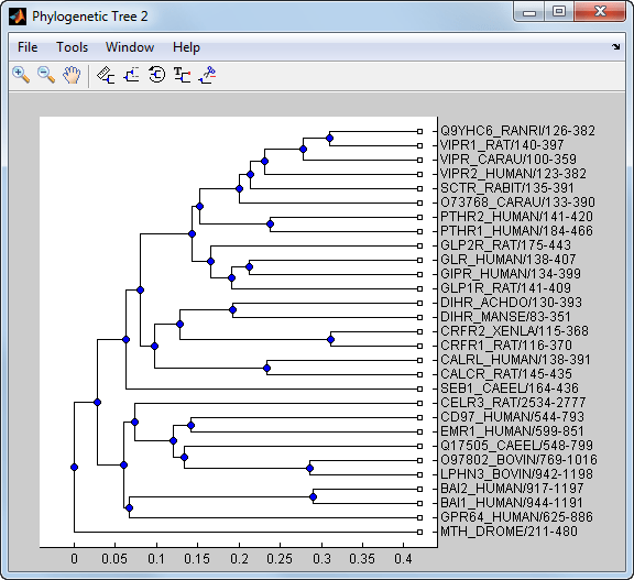 Загрузить филогенетическое дерево, созданное из семейства белков
