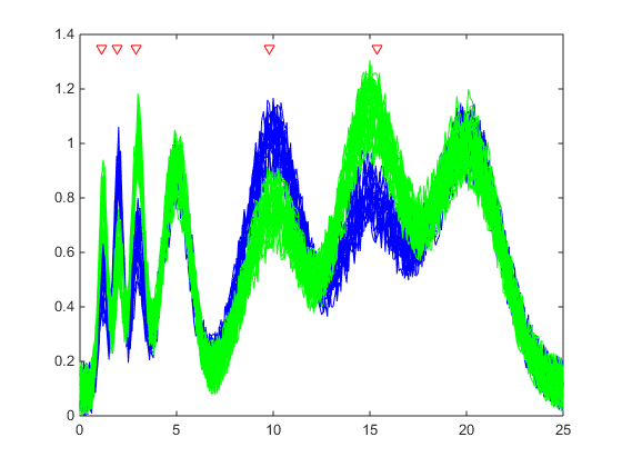 [ использует региональную информацию, чтобы перевесить IDX, Z] = rankfeatures(X, Group, ...'NWeighting', BETA, ...)Z значение потенциальных элементов с использованием , где Z * (1-exp(-(DIST/BETA).^2))DIST - расстояние (в строках) между элементом-кандидатом и ранее выбранными элементами. BETA устанавливает весовой коэффициент. Он больше или равен 0. Когда BETA является 0 (по умолчанию) потенциальные элементы не взвешиваются. Маленькое DIST (близко к 0) перевешивает статистику значимости только близких признаков. Это означает, что элементы, близкие к уже выбранным элементам, реже включаются в выходной список. Эта опция полезна для извлечения элементов из временных рядов с временной корреляцией.
