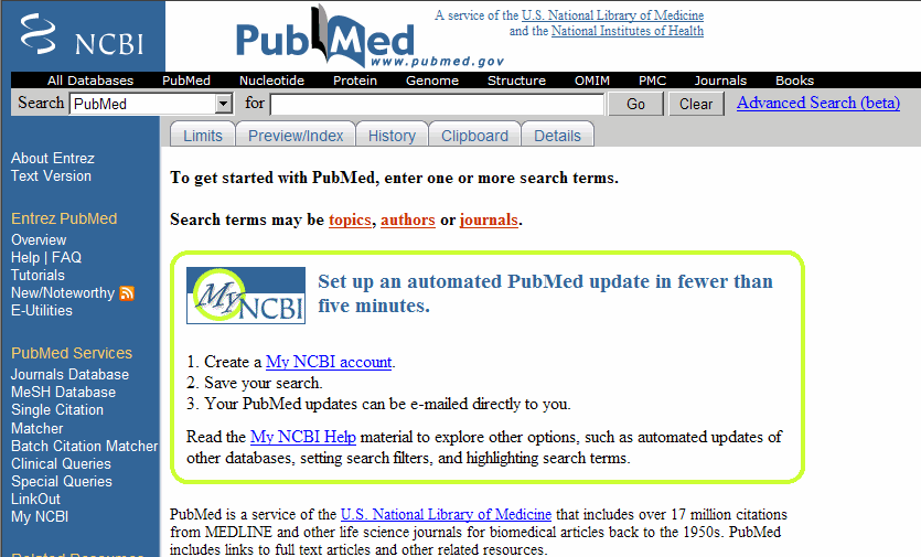 % Create base URL for PubMed db site baseSearchURL = 'https://www.ncbi.nlm.nih.gov/sites/entrez?cmd=search';