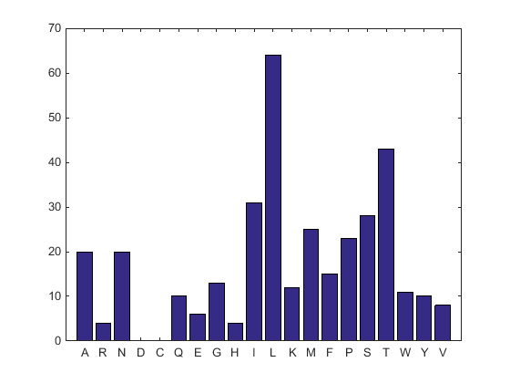 Отображается гистограмма. Обратите внимание на высокое содержание лейцина, треонина и изолейцина, а также на отсутствие цистеина и аспарагиновой кислоты.