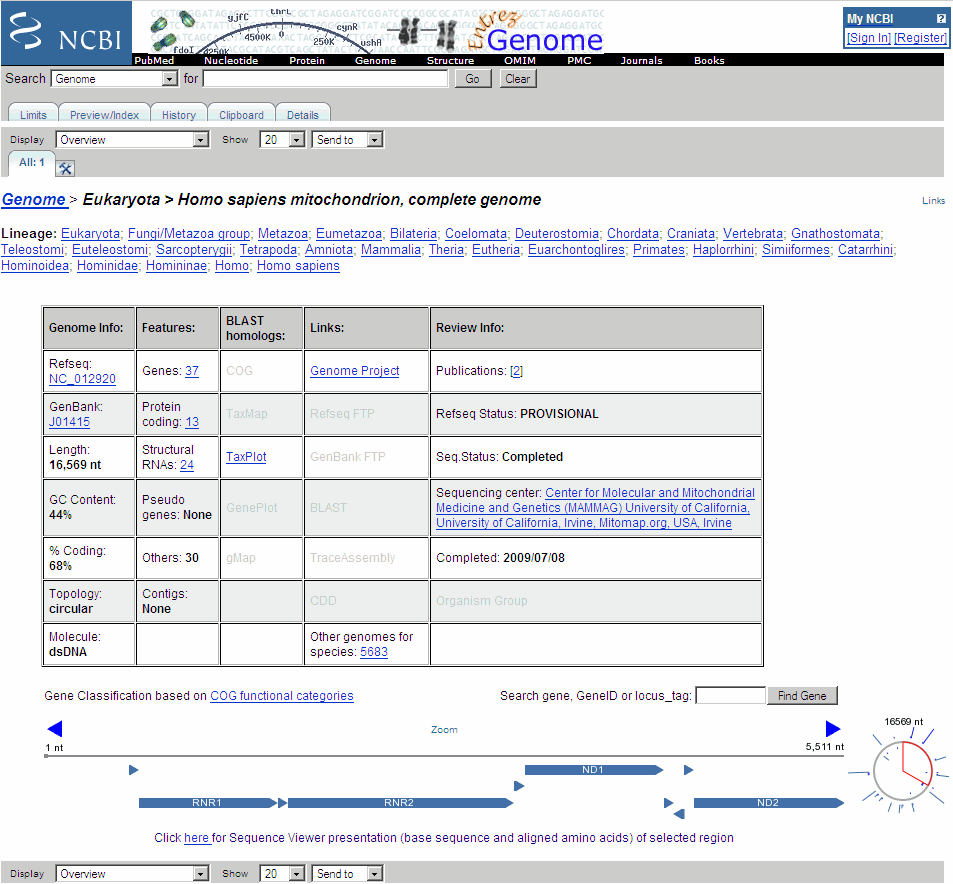 Выберите страницу результатов. Например, щелкните ссылку с меткой NC_012920.