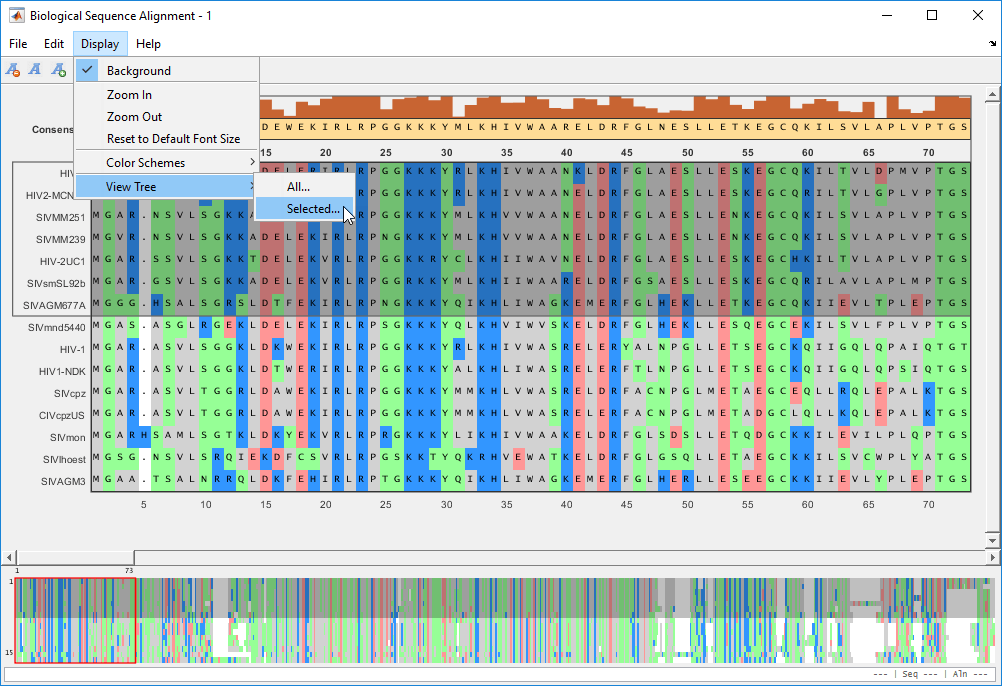 Выберите меню «Отображение» > «Показать дерево» > «Выбранные»... для создания дерева из выбранных последовательностей.