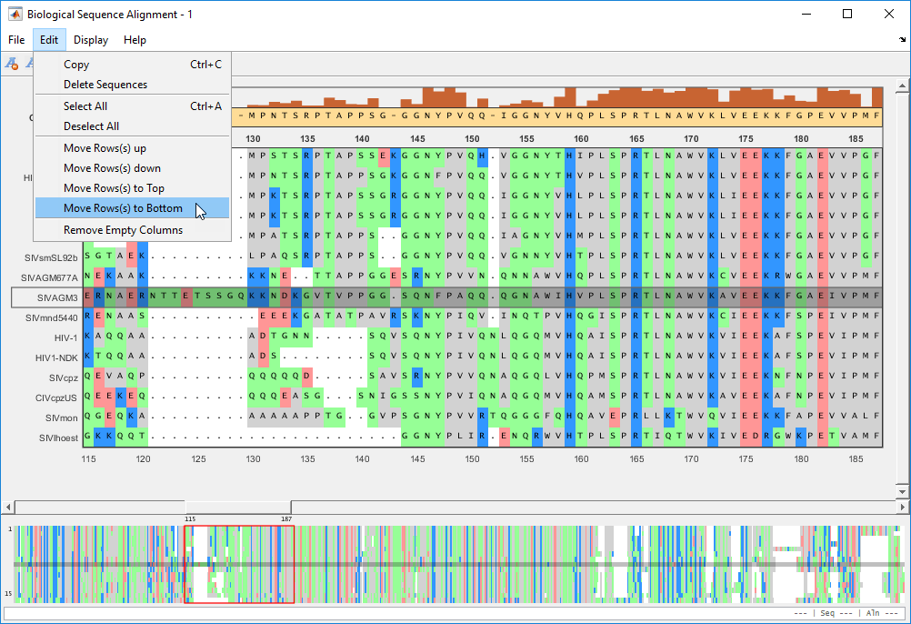 Приложение Sequence Alignment объединяет множество функций последовательности и выравнивания на панели инструментов. Вместо ввода команд в окне команд MATLAB ® можно использовать это приложение для визуального осмотра нескольких трасс и внесения ручных корректировок.