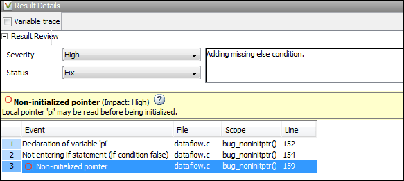 Как только вы поймете первопричину поиска Polyspace ®, вы сможете исправить код. В противном случае добавьте сведения о проверке в результаты Polyspace, чтобы исправить код позже или оправдать результат. Эту информацию можно использовать для отслеживания хода проверки.