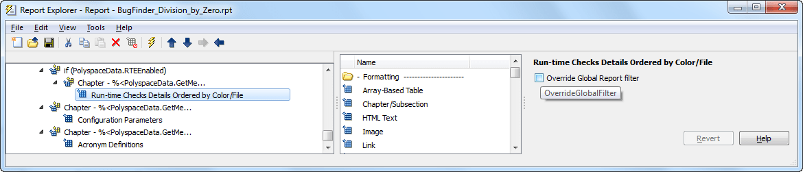 Откройте шаблон BugFinder в интерфейсе Report Explorer и сохраните его в другом месте с другим именем, например, BugFinder_Division_by_Zero.